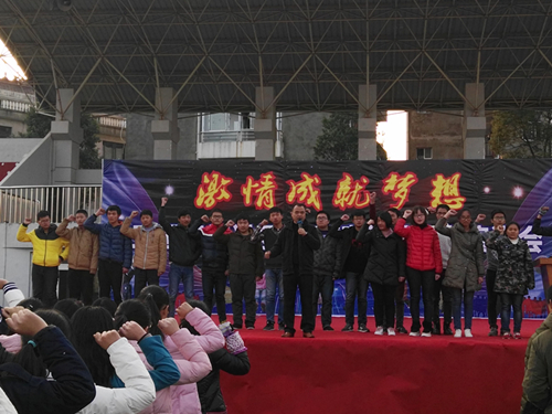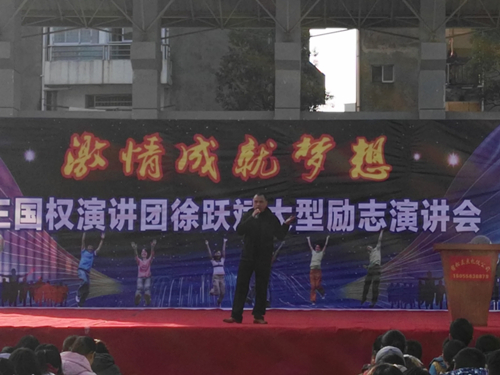 11月26日下午,我校邀請(qǐng)了全國(guó)高考勵(lì)志演講第一團(tuán)隊(duì)——王國(guó)權(quán)團(tuán)隊(duì)為我校2017屆高三學(xué)子作高考勵(lì)志演講。王國(guó)權(quán)團(tuán)隊(duì)的首席演講師徐躍斌作了《激情成就夢(mèng)想》的勵(lì)志演講。