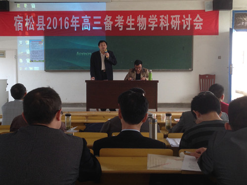 4月13日,2016年宿松縣生物學科高考備考會在九姑中學舉行。我校生物學科高三教師在劉早田副校長和生物組組長張慶華老師帶領下參加了會議。會議由縣教研室楊鵬程主任主持,九姑中學陳靜老師上了高三二輪專題復習展示課《細胞代謝——光合作用和呼吸作用》。