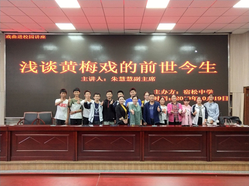 為傳承弘揚戲曲文化精髓,推進“戲曲進校園”工作,培養學生戲曲素養,營造校園戲曲文化氛圍,推進戲曲藝術振興發展。10月19日,宿松中學特別邀請宿松縣戲劇家協會副主席兼秘書長朱慧慧老師在校圖書館學術報告廳作《黃梅戲的前世今生》主題講座。