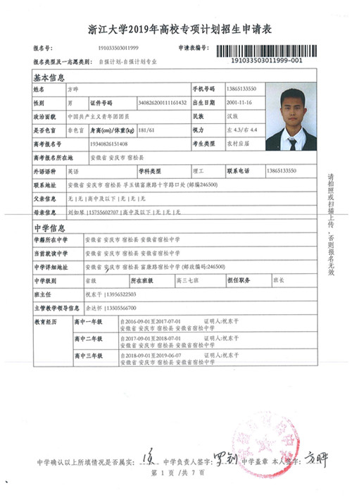 高三(7)班方曄同學公示材料