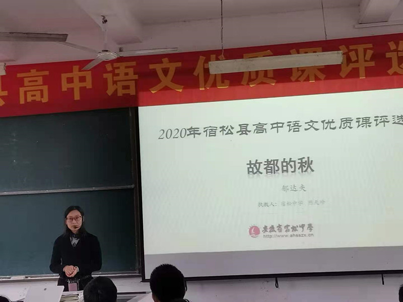 此次優質課受疫情影響,以網絡評審方式進行,選手從統編教材自選課題,設計教案,制作課件,錄制教學視頻參賽。陳天珍老師課題為統編高中語文必修上冊第三單元任務群學習之一的《故都的秋》,她以新穎的設計,精彩的語言,嚴謹的思維,扎實的基本功獲得參賽評委的一致好評。宿松中學語文教研組對陳天珍的參賽高度重視,專門組建指導團隊,深入解讀課文,精心設計教案,反復打磨,不斷修正,多方協作,最終代表我縣榮獲本屆大賽的一等獎。