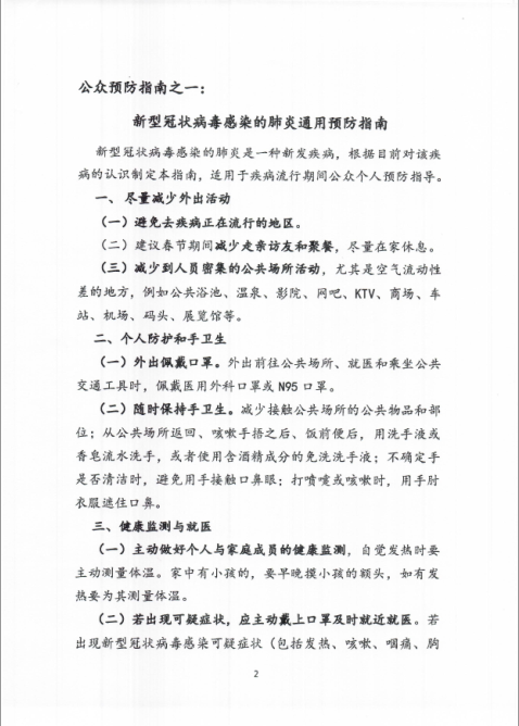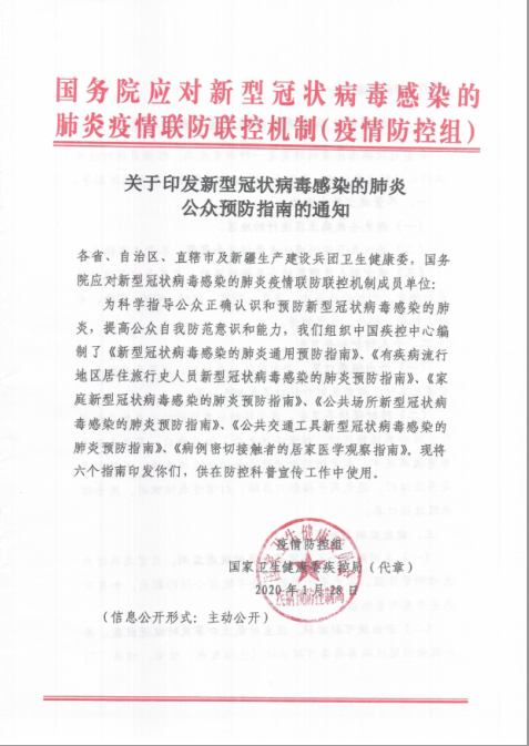 國務院印發《新型冠狀病毒感染肺炎公眾預防指南》