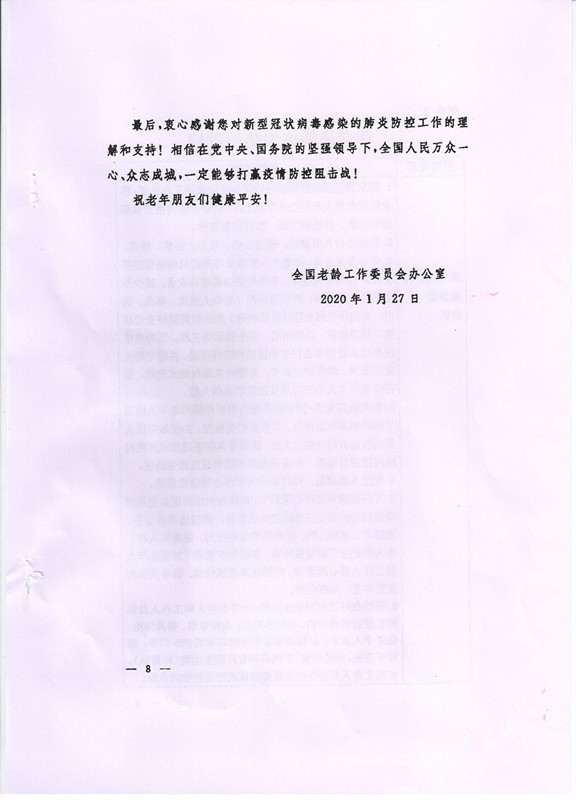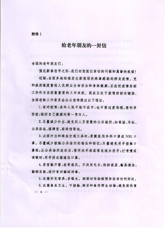 轉(zhuǎn)發(fā)全國老齡工作委員會辦公室《給老年朋友的一封信》