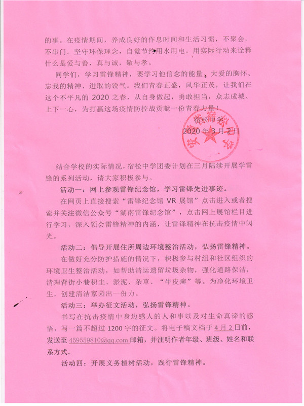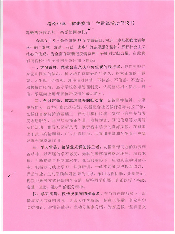 宿松中學(xué)“抗擊疫情”學(xué)雷鋒活動(dòng)倡議書