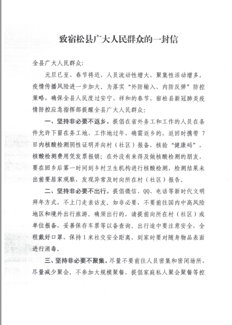 轉發:《致宿松縣廣大人民群眾的一封信》
