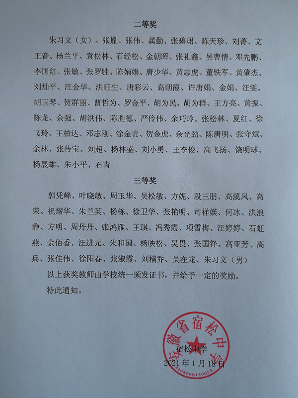 以上獲獎(jiǎng)教師由學(xué)校統(tǒng)一頒發(fā)證書,并給予一定的獎(jiǎng)勵(lì)。