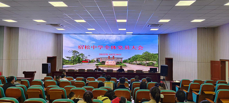 10月20日晚,宿松中學在圖書館學術報告廳召開全體黨員大會,集體學習黨的二十大報告。
