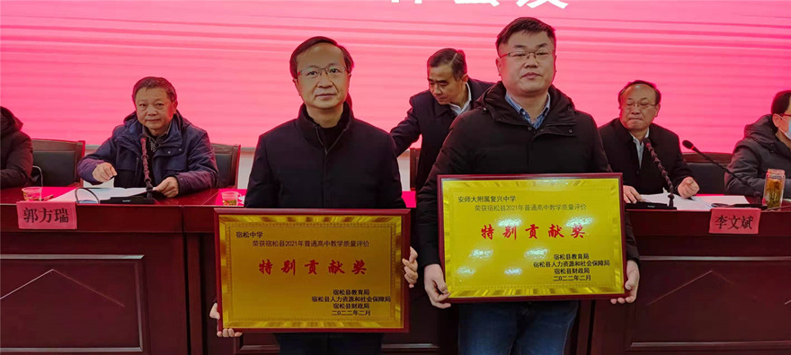 新春伊始又傳喜訊,砥礪拼搏再啟征程。2月19日,全縣普通高中教學會議在宿松中學隆重召開。大會揭曉了2021年宿松縣普通高中成績單,對教育質量先進單位進行了通報表彰。宿松中學榮獲“教學質量綜合獎”“實現目標獎”“特別貢獻獎”等三大獎項。