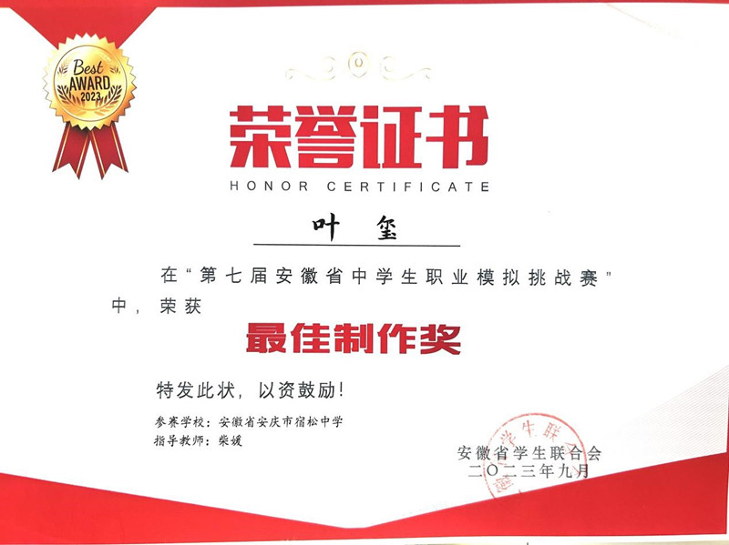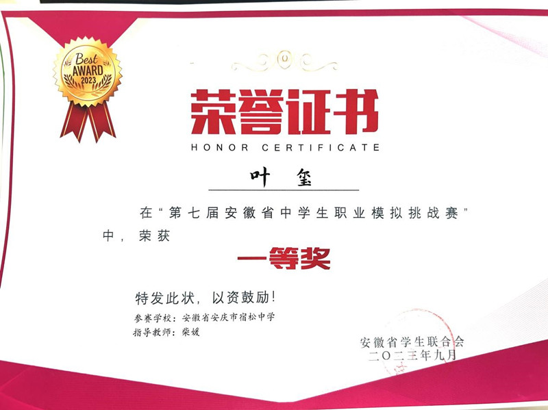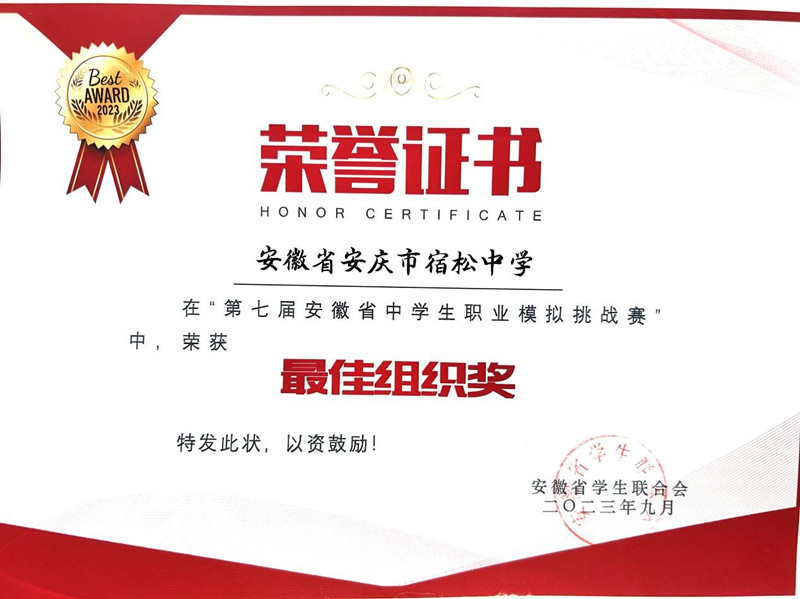 成績的取得離不開同學(xué)們自己的努力,也離不開學(xué)校對(duì)學(xué)生生涯規(guī)劃教育的高度重視。我校從2019年加入職模賽至今,每年通過我校的職業(yè)模擬社團(tuán)組織活動(dòng)并選拔學(xué)生參與比賽,讓學(xué)生明確職業(yè)前景、鍛煉自身能力、助燃高考動(dòng)力。今后,宿松中學(xué)也會(huì)繼續(xù)積極組織參與此項(xiàng)賽事,助力更多學(xué)生激揚(yáng)青春、逐夢(mèng)啟航。
