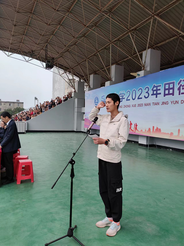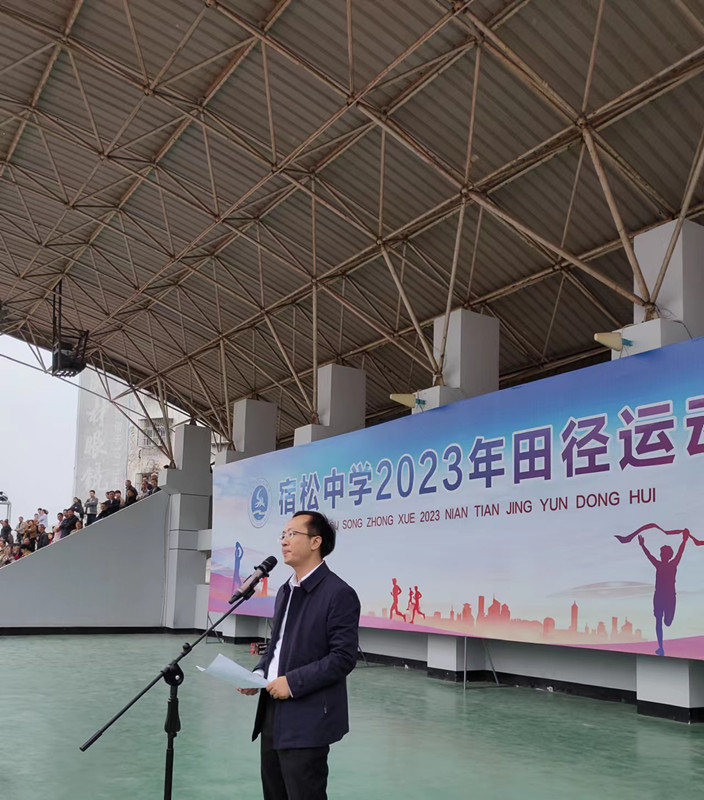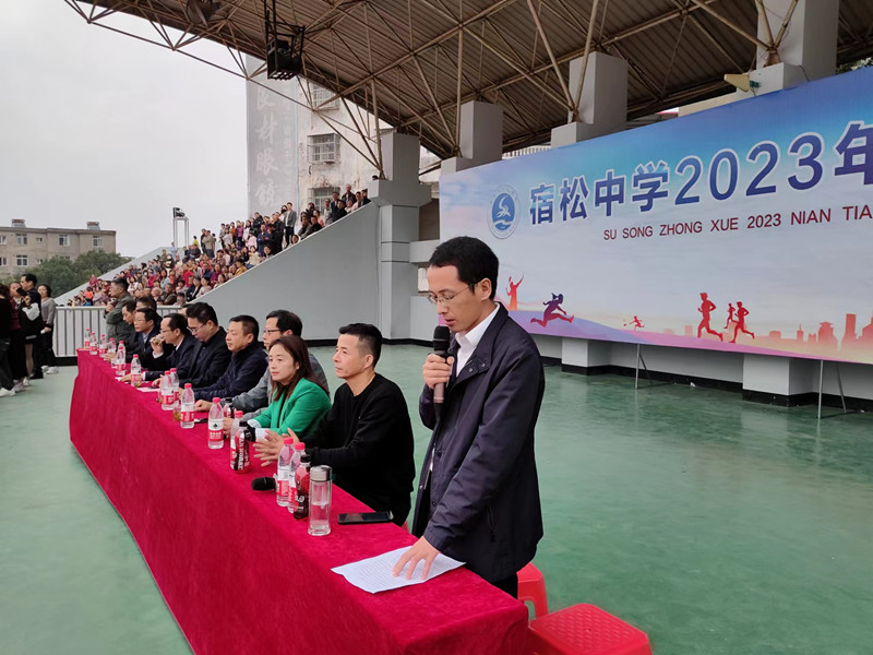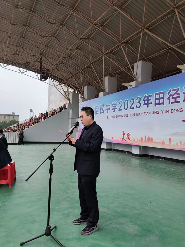 宿松縣教育局黨委委員鄭振家隨后致辭。他回顧了我校2023年的高考成績,通報了我校近期的喜訊,對我校優(yōu)異的辦學(xué)成果表示肯定,對我校本次運(yùn)動會的開幕表示熱烈祝賀。