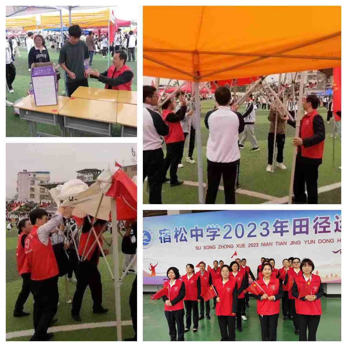 黨旗引領成長,紅色點亮青春。為學習貫徹落實黨的二十大精神,發揮黨員的先鋒模范作用,宿松中學黨總支在運動會召開之際,組織開展了“助力校運會,黨員在行動”志愿服務活動。