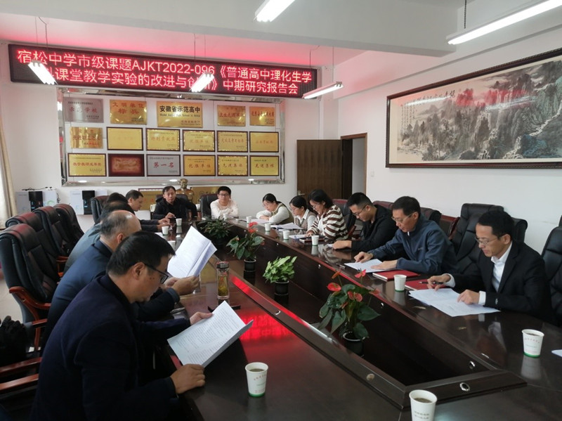 10月8日,宿松縣教育局周少華主任、朱才德主任、楊程鵬主任、歐陽明主任一行,蒞臨我校舉行宿松中學(xué)2022年市級課題中期總結(jié)報告會。會議由副校長張松林主持,王金旺主任、朱學(xué)文主任及課題組相關(guān)人員參加了會議。