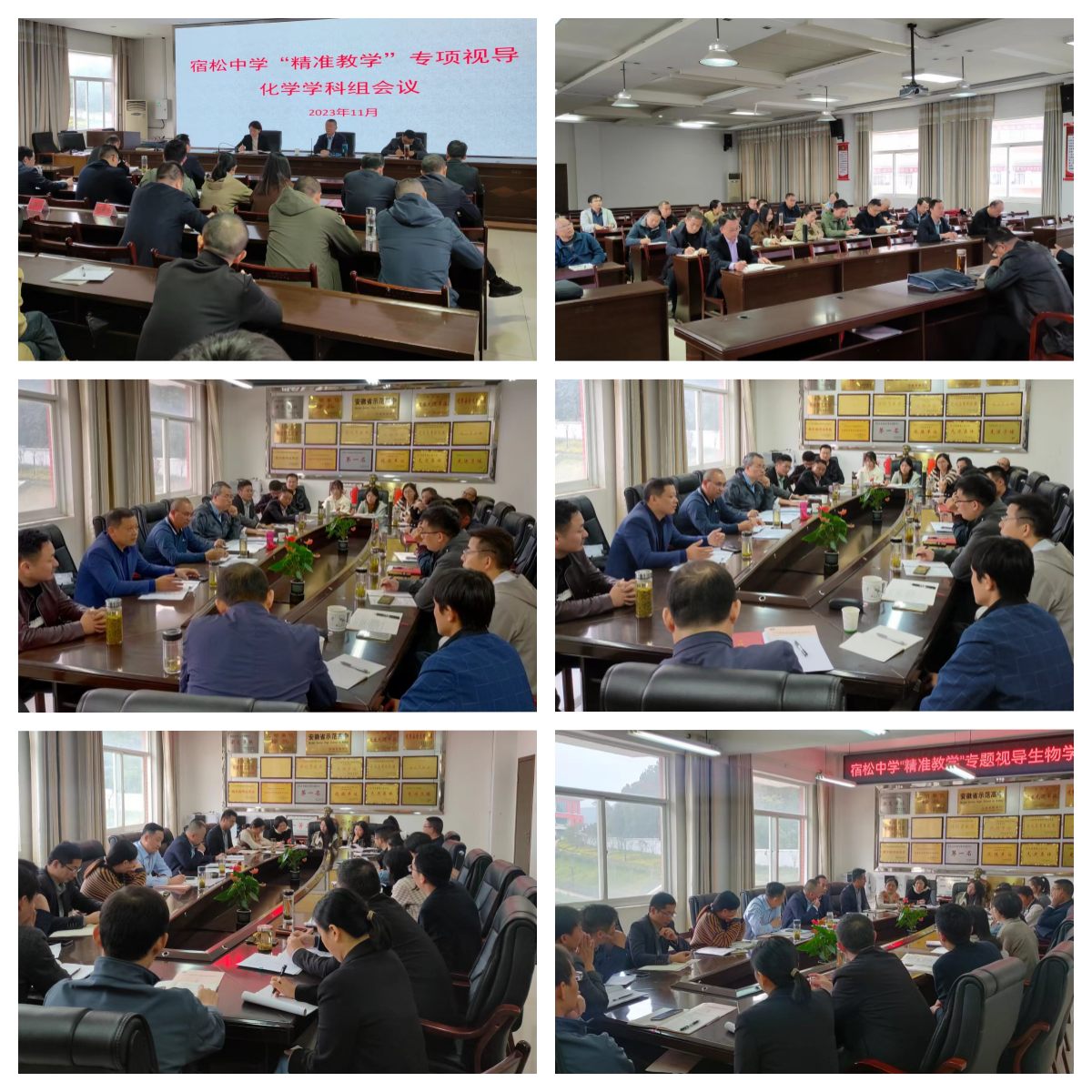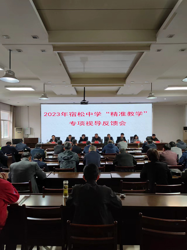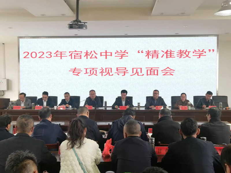 2023年11月8日至11月10日,安慶市教體局視導(dǎo)組一行在安慶市教體局副局長陳黨生的帶領(lǐng)下蒞臨宿松中學(xué)開展為期三天的“精準(zhǔn)教學(xué)”專項視導(dǎo)工作,近距離、多維度了解我校普通高中“三新”改革尤其是選課走班、課標(biāo)實施、拔尖創(chuàng)新人才培養(yǎng)等推進落實情況,檢查我校教育教學(xué)常規(guī)管理工作,進行“精準(zhǔn)教學(xué)”課堂教學(xué)觀察和研討。本次視導(dǎo)采取學(xué)校自評、課堂觀察、查閱資料、走訪交流、評估反饋等形式進行,按照見面部署、學(xué)科教學(xué)視導(dǎo)、視導(dǎo)反饋的流程開展。