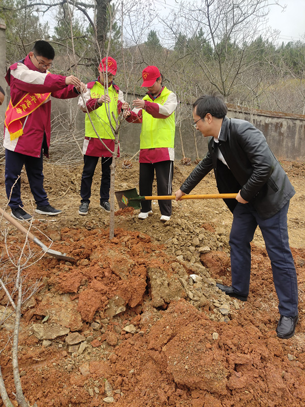 今年3月12日是我國第45個植樹節,為弘揚雷鋒精神,引導我校廣大師生深入貫徹“綠水青山就是金山銀山”的發展理念,在校黨總支的領導下,校團委組織開展了以“雷鋒精神我傳承,青春閃耀新時代”為主題的義務植樹活動。學校黨總支書記張偉中、校長胡為群、副校長石雅游,部分二級機構人員及學生志愿者參與了此次活動。