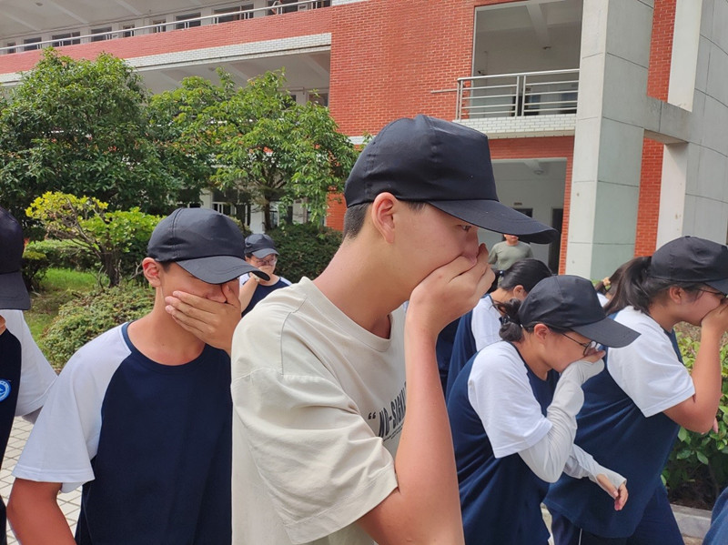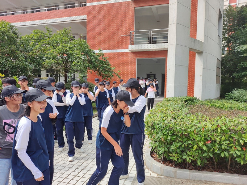 警報一響,教學樓C樓各班學生有序列隊,從東西兩個樓梯口逃生至運動場用時8分鐘。