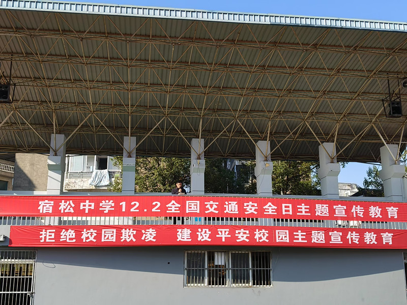 12月2日,宿松中學在校田徑運動場為全校學生舉行了“122全國交通安全日”以及“拒絕校園欺凌,建設平安校園”主題宣傳教育活動,高二年級部部長吳松敏老師擔任主講。