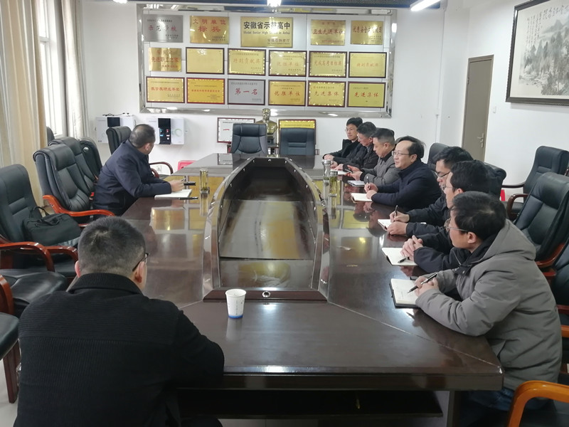 3 月 1 日上午,宿松縣委副書記魯長江蒞臨宿松中學,調研指導我校新學期工作。校黨總支書記張偉中、校長胡為群作了詳細的工作匯報。