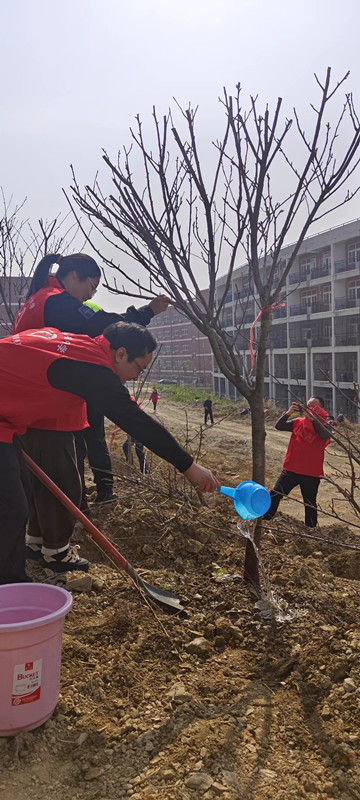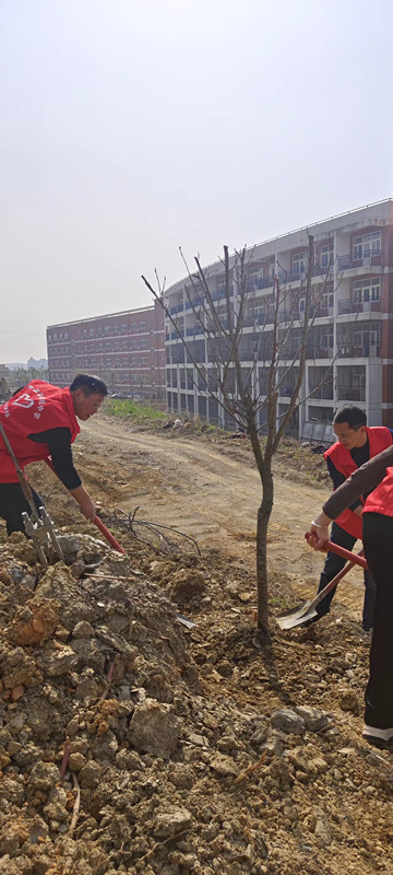 活動現場,氣氛熱烈。黨員們身先士卒,團員們積極響應,大家齊心協力,挖坑、栽樹、培土、澆水,每一個環節都一絲不茍。植樹過程中,歡聲笑語不斷,種植的每一棵樹都是對自然的一份回饋,也是對未來的一份期許。大家不僅為校園增添了一抹綠色,更用實際行動踐行了雷鋒精神。