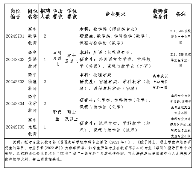 根據《事業單位人事管理條例》(國務院令 第652號)、《安徽省事業單位公開招聘人員暫行辦法》(皖人社發〔2010〕78號)和《關于進一步做好艱苦邊遠地區縣鄉事業單位公開招聘工作的實施意見》(皖人社發〔2017〕21號)等文件規定,經研究,2024年安徽省宿松中學采用校園招聘方式擇優選聘8名全額撥款事業編制教師,現將招聘有關事項公告如下: