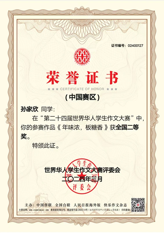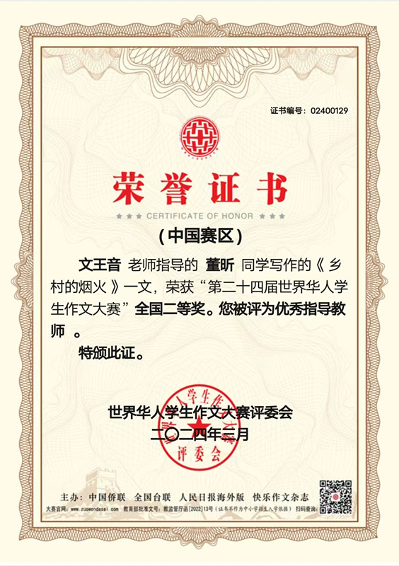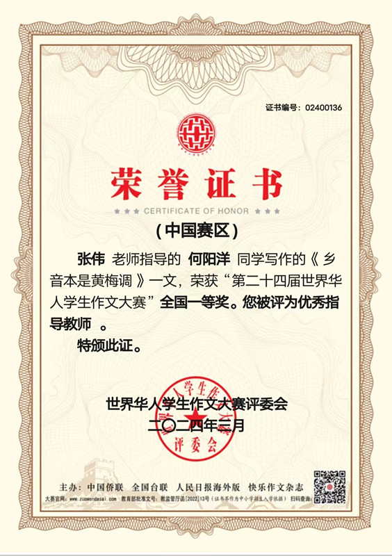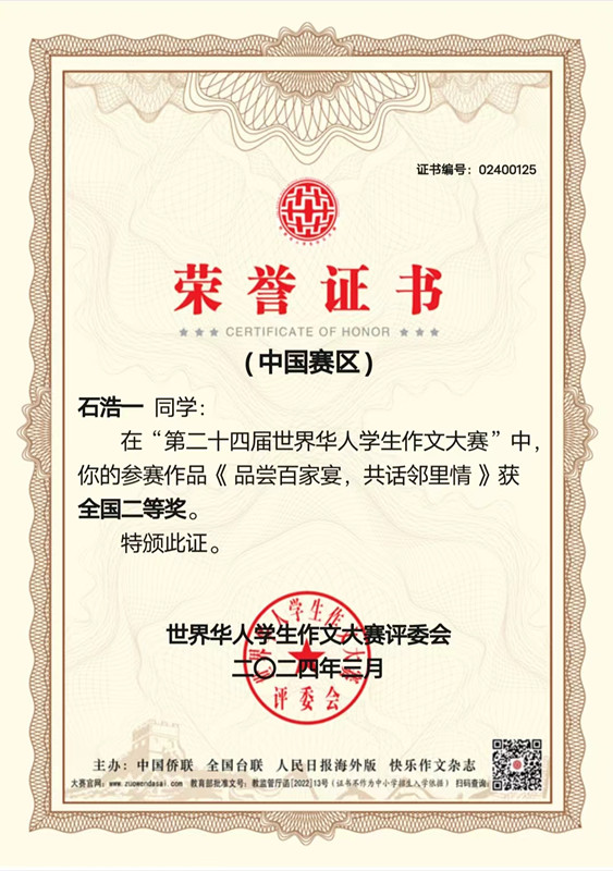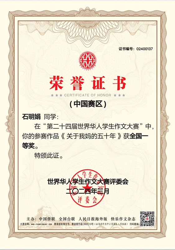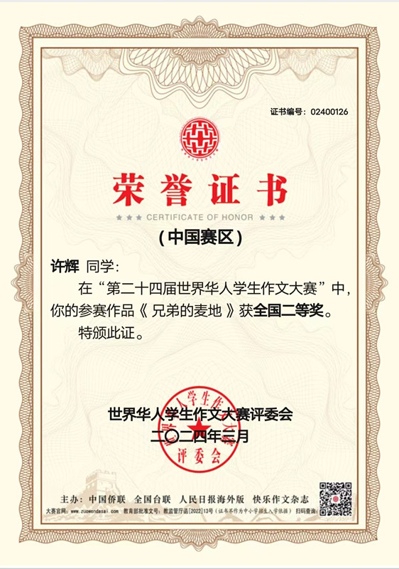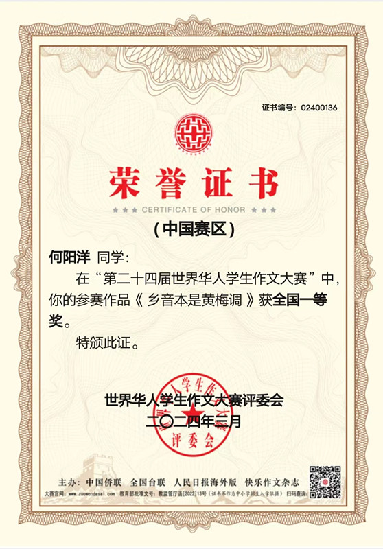45 個國家和地區的 380 多萬名學生參加,評委會共收到復審稿件 35 萬多份。在如此激烈的競爭中,宿中學子們脫穎而出,展現了他們的出眾的文學才華和扎實的寫作功底。