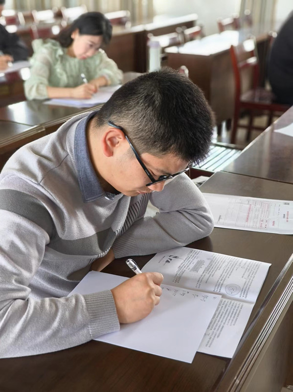 考場上,老師們認真對待,與學生同時間、不同考場答同一試卷。他們仔細閱讀、用心構思、規范作答,展現出了專業的態度和素養。