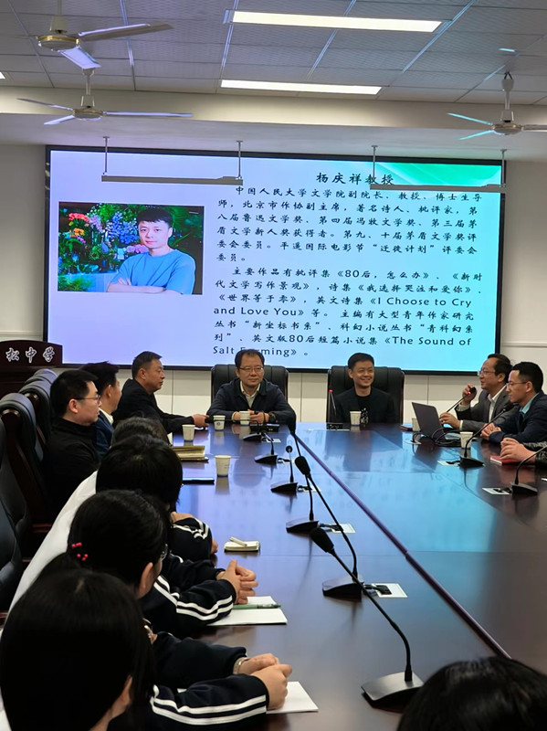 4 月 30 日上午,宿松中學綜合樓四樓會議室座無虛席,中國人民大學文學院副院長楊慶祥教授應邀蒞臨我校,為優秀學生代表帶來了一場精彩紛呈的講座。宿松縣教育局副局長楊朝陪同出席,宿松中學黨總支書記張偉中、校長胡為群、副校長張松林以及部分教師代表也出席了活動。