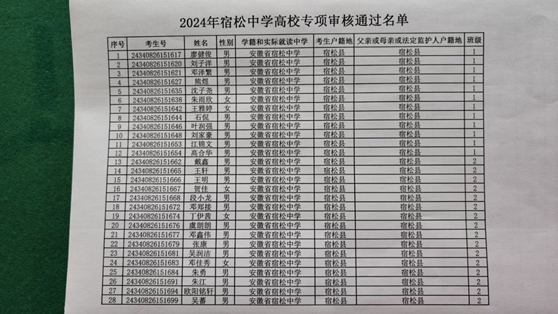 2024年宿松中學(xué)高校專項審核通過名單公示