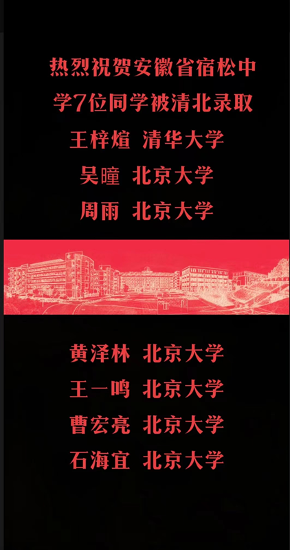 喜報 | 熱烈祝賀宿松中學7名學生被清北錄取