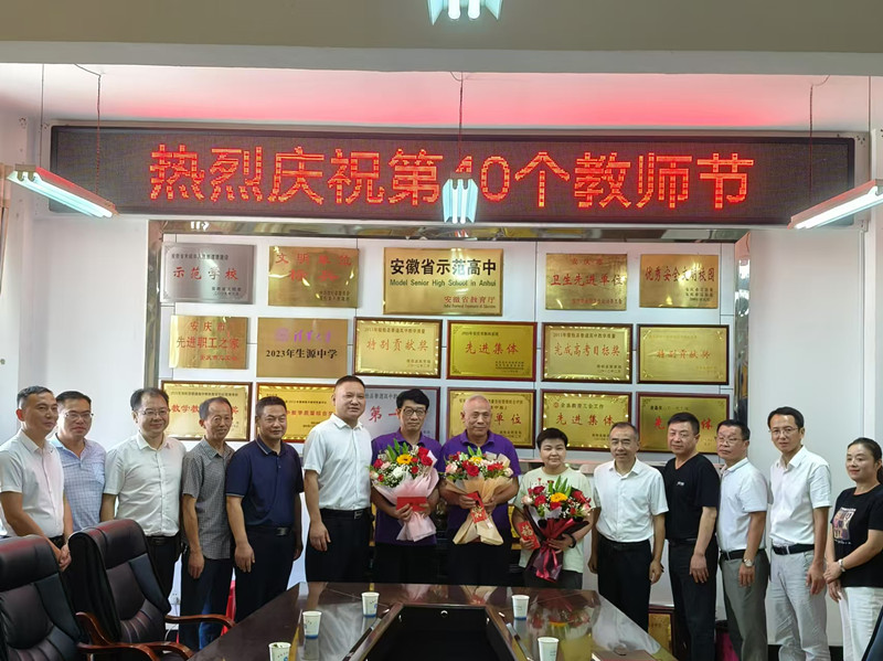 9 月 10 日,正值第 40 個教師節(jié),縣委書記曹曉革蒞臨宿松中學開展慰問活動。曹曉革親切看望了辛勤工作在教學一線的教師代表,為他們送上鮮花與慰問金,并通過他們向我校全體教師致以節(jié)日問候和崇高敬意。