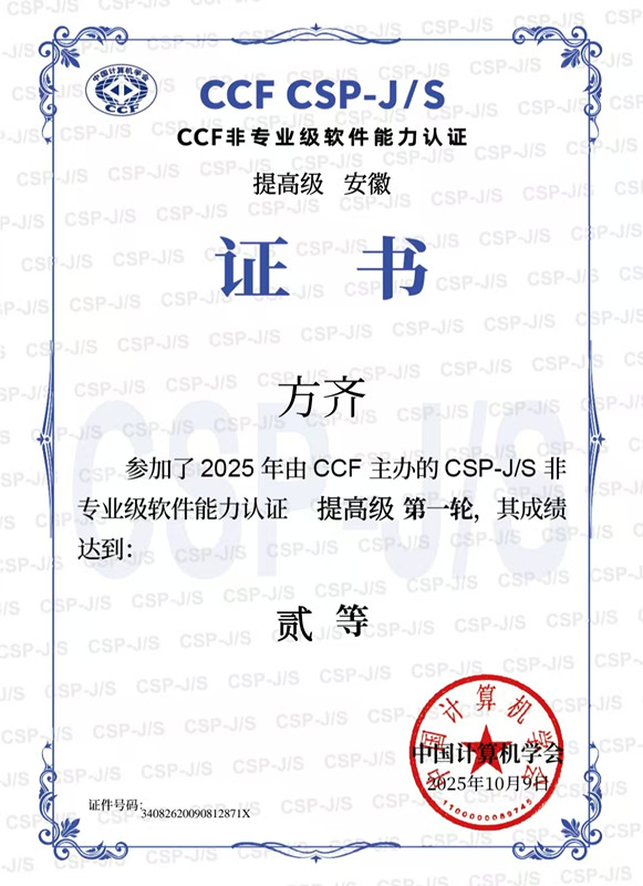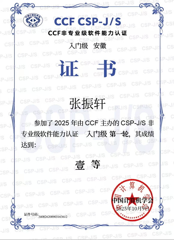 近日,由中國計算機學會舉辦的 CSP-J/S 競賽活動第一輪成績揭曉,我校學子在此次競賽中表現出色。