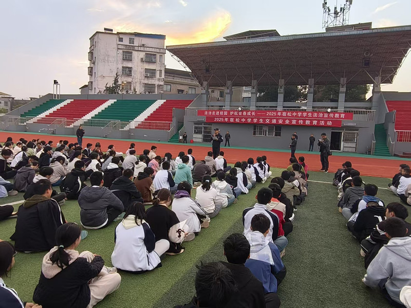 為增強學生法治意識,筑牢青春安全防線,11月4日,宿松中學在田徑運動場舉行“法治走進校園 護航青春成長”主題宣傳活動,全校學生全員參與。