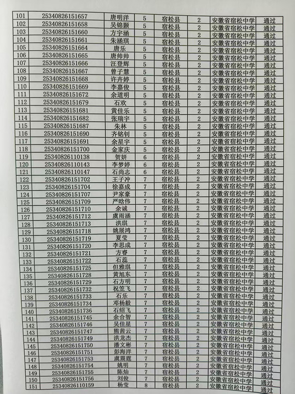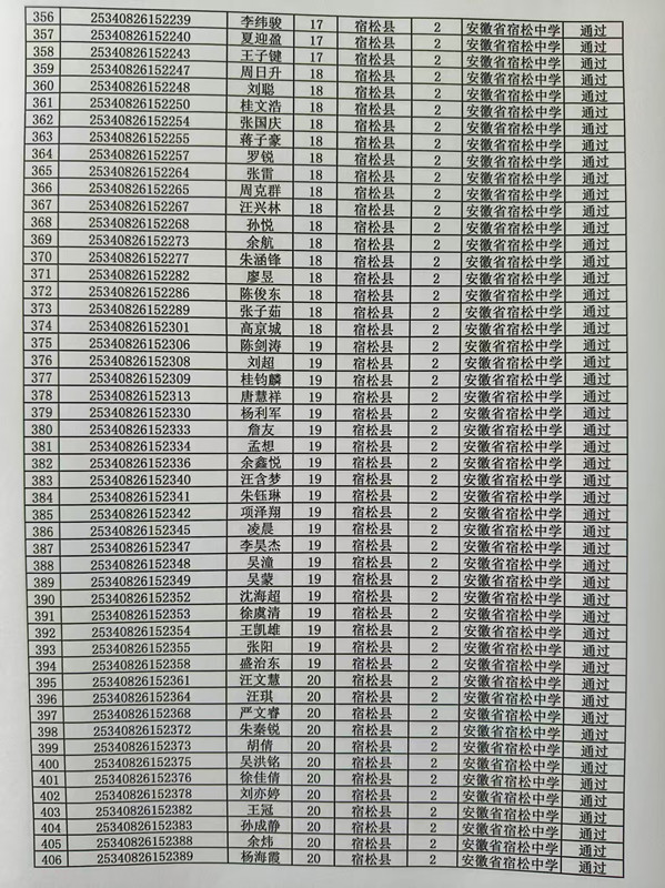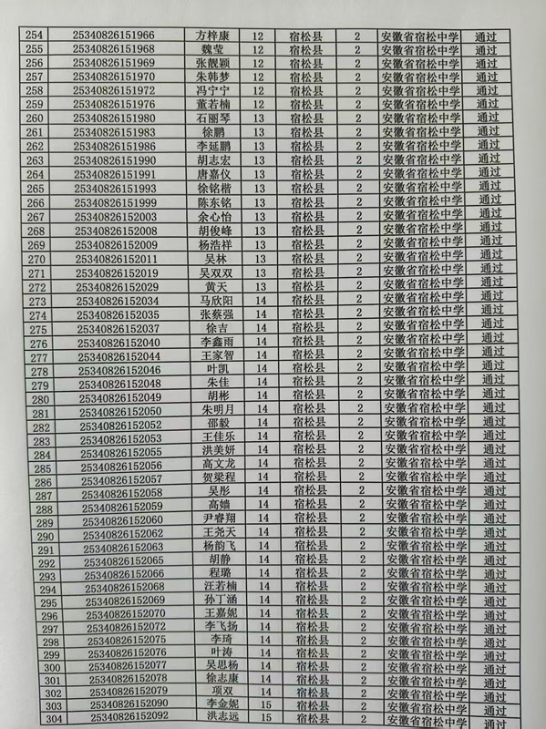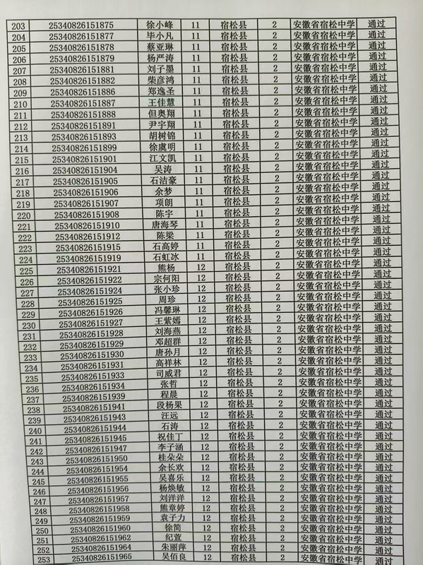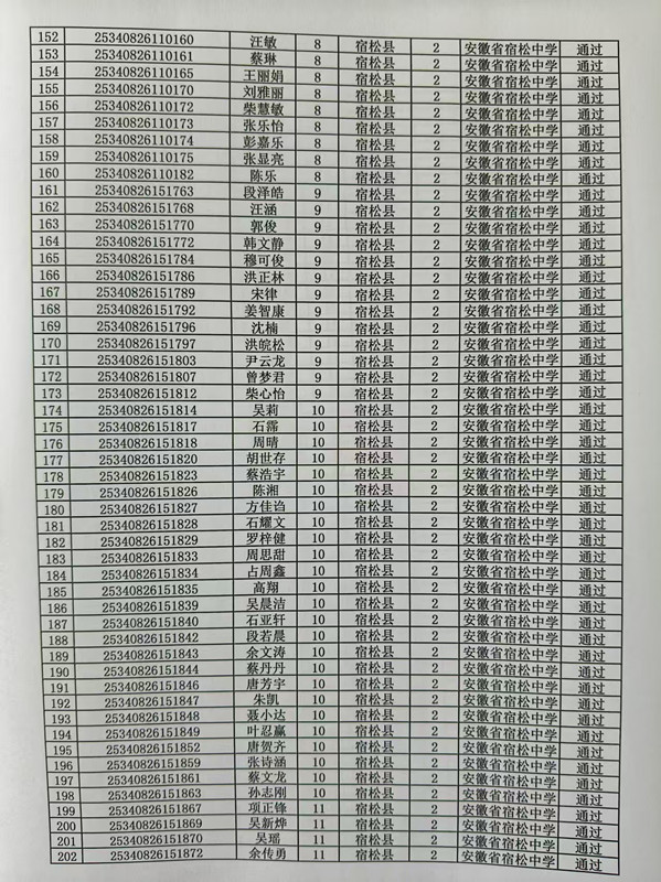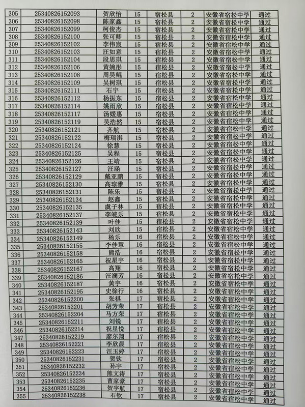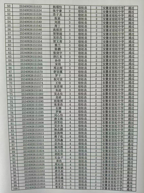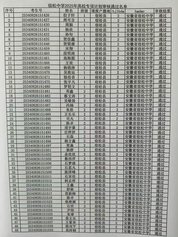 宿松中學2025年高校專項計劃審核結果公示